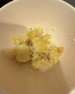 手で軽くちぎって丸めてあげるとお餅風になります。